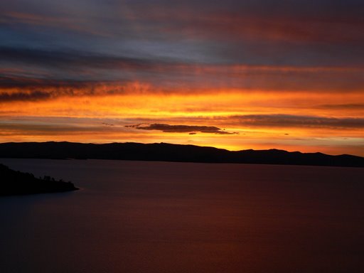 Passées les deux “cabanes à frites » qui font office de postes frontières, nous arrivons en Bolivie. Notre première étape sera Copacabana, charmante petite ville sur la rive Sud du Lac Titicaca. Il fait bon y flâner et certains gringos y ont a priori bien pris leurs marques, se mêlant aux petits vendeurs des rues pour proposer colliers et autres babioles. Le lac Titicaca, souvent présenté à tord comme le lac navigable le plus haut du monde (on en trouve à des altitudes plus élevées au Chili par exemple), se tient tout de même a 3820m ! Vestige d’une ancienne mer intérieure, il a une profondeur maximale de 457m et 230km de long pour ±100 km de large (encore plus grand donc que le lac des corbeaux à La Bresse, c’est dire !). Les villages traditionnels aymará qui bordent les rives du lac, avec en toile de fond les sommets enneigés de la Cordillera Real, composent un paysage magique. A la tombée du jour, je ne peux me soustraire à une petite ascension au Cerro Calvario pour contempler le lac au coucher du soleil. La promenade figure en fait le chemin de croix du Christ et l’on passe donc par 14 croix représentant son supplice. En tout cas, sans être supplicié, le spectacle qui m’attendit en haut fut miraculeux, pour ne pas dire divin…