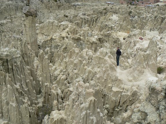 Dans la matinée, nous visitons la « vallée de la lune », étrange labyrinthe de gorges et de pitons érodés. Certaines de ces formations rocheuses sont similaires aux « cheminées de fées » des Alpes, un bloc de roche dur se retrouve perché sur une aiguille de roche meuble grâce à une lente érosion. Pendant le déjeuner, on fait la rencontre de Jean-Pierre, un petit cireur de chaussure qui nous propose ses services… Autour d’un bon repas, nous discutons un peu de son quotidien. Jean-Pierre a 8 frères et sœurs, c’est beaucoup. D’autant plus que son papa est décédé et que sa maman ne peut survenir seule à leurs besoins avec ses maigres revenus. Ainsi, Jean-Pierre (il est apparemment né en France) travaille le matin de 7 à 12h et va à l’école par bonheur l’après-midi. Même si l’on ne le découvre pas, ça fait toujours mal au ventre de savoir que des gamins de 10 ans puissent déjà avoir de telles préoccupations. C’est malheureusement la réalité de millions d’enfants, de la plupart des enfants sur Terre d’ailleurs. Quoiqu’il en soit notre petit Jean-Pierre nous a quitté avec un grand sourire et du baume au cœur, ça laisse pensif… Suerte ptit bonhomme !