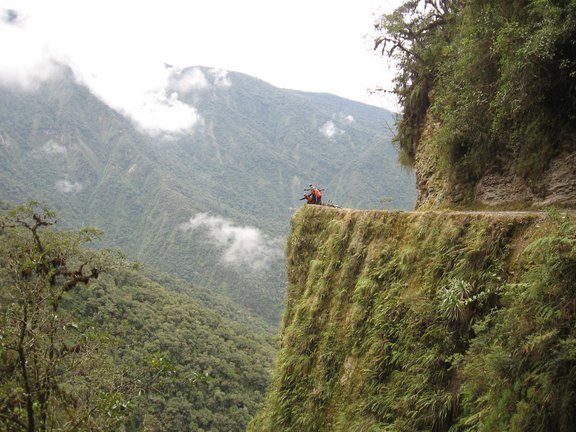 La route entre La Paz et Coroico a officiellement été classée “route la plus périlleuse du monde”. Compte tenu du nombre d’accidents mortels, ce sinistre palmarès n’est pas usurpé, puisque plus d’une vingtaine de véhicule basculaient chaque année dans le vide. Aujourd’hui, une nouvelle route a été construite et le traffic passe désormais par cette dernière. L’ancienne route est donc essentiellement réservée aux cyclistes amateurs de sensations fortes!