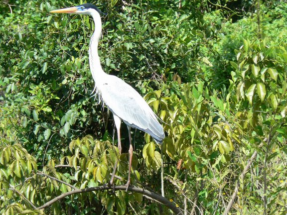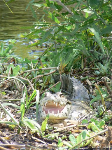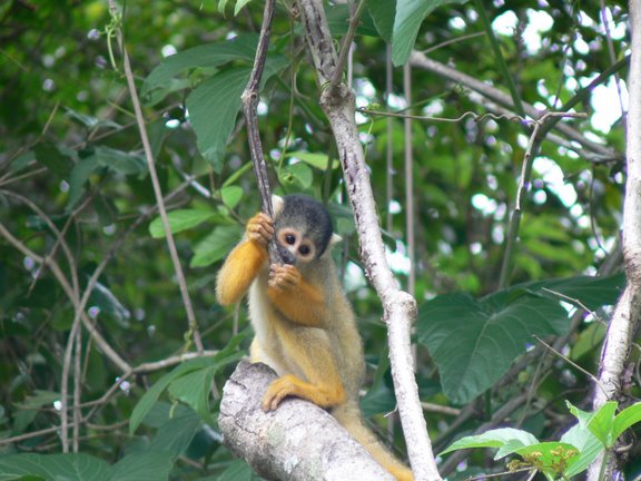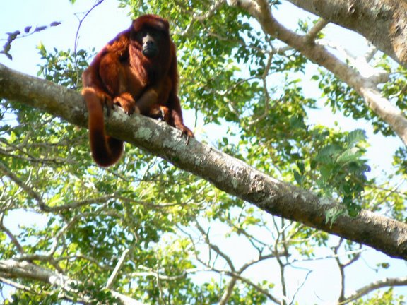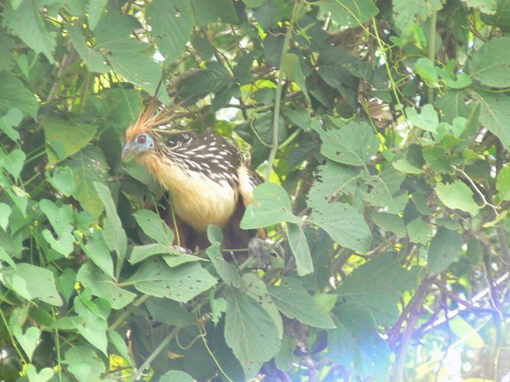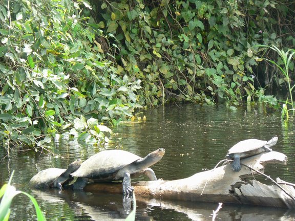 Le lendemain on commence les choses sérieuses. On abandonne Pluto et Cie pour rejoindre le monde d’Indiana Jones. Ainsi, après avoir joué de la machette à l’avant de la pirogue (efficace le canif !), on arpente les marécages pendant plusieurs heures, de l’eau jusqu’à mi-cuisses pour débusquer un…anaconda ! Un américain aura le plaisir d’en voir un « petit » de 2m, le chanceux ! Remarque, il a dû les voir en version originale, les Indiana J. ; ça aide c’est sûr ! La « chasse » est rendue difficile à cause de la montée des eaux ; c’est la saison des pluies. Sa couleur noire/ marron assure à l’anaconda un camoufflage parfait dans ce milieu marécageux, notre meilleure chance étant de le trouver à paraisser sur la terre où il est aussi moins rapide. La pêche aux piranhas l’après-midi sera tout aussi infructueuse, et ceux-ci nous narguent en plus en surface. J’ai proposé à Mélanie de faire une pêche à la main mais elle n’a pas voulue, et elle se prétend être une co-équipière ! Le troisième jour nous laissera également un merveilleux souvenir puisque nous consacrons la matinée à nager avec des dauphins. Ce qui en soit est déjà sympathique. J’hésite d’ailleurs à vous préciser que ce dauphin d’eau douce appelé boto ajoute à sa robe grise de jolies teintes rosées. « T’as fais quoi hier ? » - « Boh, j’ai nagé avec des dauphins roses en Amazonie, et toi ? ».