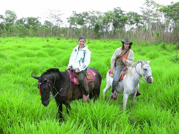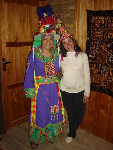 De retour de notre aventure, nous retrouvons notre ami Thomas. Nous l'avons rencontré à Rurre où il est venu s’installer après avoir rencontré Suzanna, sa compagne (en habit de danseuse traditionnelle sur la photo). Aujourd'hui, il propose des randonnées à cheval, part en excursions comme traducteur et loue aussi ses « cabanas », très jolies qu'il a construit avec le savoir-faire de la communauté de San Miguel. Il nous raconte entre autre sa chasse à la tarentule qui à priori ont un penchant avéré pour les toits en ratata et les endroits frais et humides genre la douche ! Les bonnes bêbêtes… même pas peur ! Nous apprenons de nombreuses choses en sa compagnie comme par exemple le fait qu’un bananier ne donne qu’un régime. Ensuite, il faut le couper et une nouvelle pousse au centre donnera à son tour, en quelques mois seulement. Il faut dire que dans le bassin amazonien les plantes poussent avec une rapidité déconcertante, les bonnes comme les mauvaises. Nous parlons aussi de la culture sur brûlis qui se pratique sur des milliers d’hectares. Au mois d’août, celle-ci est si intense qu’elle provoque un énorme nuage de fumées sur La Paz, pourtant à 200kms. Si c’est un signal de fumée pour le gouvernement, soyez sûr qu’il ne passera pas inaperçu ! A ce propos, nous nous sommes procuré la Nueva Constitución. Evo Morales, le président, avait donné un an à l’Assemblée Constituante pour la rédiger. Certes, c’est peut-être peu. En tout cas, à quelques jours de l’échéance : nada (rien !). Les luttes intestines corrolaires aux partis politiques ont eu raison de ce bel élan progressiste, en somme, comme d’habitude les politiques ont préféré faire la « gueguerre » plutôt que de trouver des consensus pour aller de l’avant. Evo, pas content du tout les a incité à présenter une constitution dans les plus bref délais. Ce qui fut fait. Le problème est que la plupart ne l’ont pas lue… La nouvelle constitution a donc été votée en toute illégalité, à tel point que certaines régions de Bolivie veulent aujourd’hui leur indépendance, ne reconnaissant pas de fait la légitimité de cette nouvelle constitution et donc celle du pouvoir en place par la même occasion. Ce sont ces mouvements séparatistes qui ont récemment agité la capitale constitutionnelle : Sucre. Un fuerte abrazo a nuestro amigo Thomas, gracias para todo y hasta proxima Navidad en nuestra casa… (je te l’aurais bien écrit en elfique, mais…)
