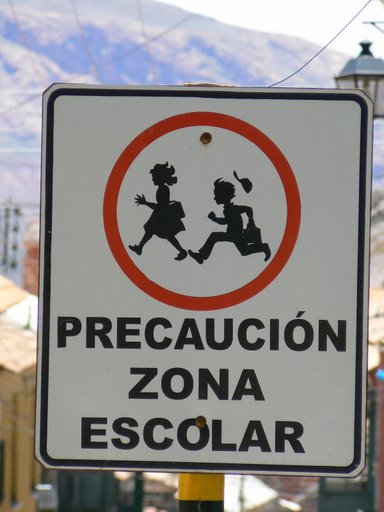 Chaque coin de rue recèle une église. En effet, à la riche époque coloniale la ville en fit construire 80 ! La ville possède des trésors d’architecture dont l’imposant hôtel national des monnaies où furent frappés les premiers Potosís (pièces en argent de l’époque) dès 1572. Je vous ai joint une petite photo d’un panneau de signalisation que je trouvais amusant et réaliste. Vous avez vu ici les écoliers (comme tout un chacun) partent à l’aventure dès lors qu’ils essaient de traverser la rue. Les passages piétons ? Connais pas ! Le code c’est : je suis en voiture donc je suis plus fort que toi petit piéton, donc je klaxonne quand même pour te le rappeler, donc je passe, si tu me crois pas… tant pis pour toi ! La boisson qui figure sur un autre cliché et le mate de coca, une infusion de feuilles de coca. Si c’est la boisson préférée de Mélanie en altitude, les mineurs eux préfèrent mâcher directement les feuilles qu’ils stockent abondamment dans une joue. Ceci les aide à tenir le coup. Suivez nous demain dans les entrailles du Cerro Rico, aux portes de l’enfer…