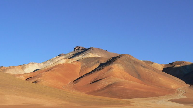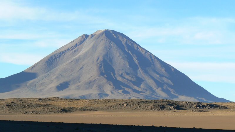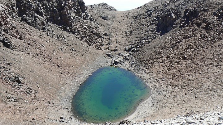 Réveil à 3h du matin, dur, dur ; je n'ai pratiquement pas fermé l'œil de la nuit à cause de cette maudite infection à la gorge. Nous montons à bord du 4X4 qui doit nous amener à 4800m pour le début de l'ascension. Je suis accompagné par un couple de jeunes Allemands, qui séduit par l'idée de gravir le Licancabur le 1 er de l'An, c'est joint à moi. C'est des sportifs, mordus d'escalade, ça ne devrait pas leur poser de problèmes. Au bout de quelques kilomètres, la roue arrière gauche décide de continuer sa route seule… Bon, et bien ce sera sans nous aussi puisque c'est ! Le guide déjà peu engageant avait fini de ne pas nous rassurer, nous savions que nous étions entre de mauvaises mains, Alea Jacta Est, le 4X4 aussi… Bref, il nous faut continuer à pieds, avec de sérieuses interrogations sur la marche à suivre ou plutôt à ne pas suivre… Néanmoins, la motivation est bien là et j'ai tout fait pour y être aussi, là. Nos incertitudes se dissipent avec les premières lueurs du soleil, après tout nous n'avons besoin du guide que pour nous indiquer le chemin, l'ascension n'est pas périlleuse en soi, seulement éprouvante. Il nous faut 2h30 pour atteindre le pied du volcan, le « vrai » départ prévu. A 10h Max et Ada (les amis Allemands), décident de redescendre (ça fait déjà 6h que nous marchons), Max n'est vraiment pas en jambes et c'est bien normal… Niveau calorifique et énergétique, on est un peu « light » comme on dit : 2 barres de choco et un petit pain chacun + un litre d'eau. On pourrait croire que c'est pour rendre un émouvant hommage à 2 amis qui firent un 5200 dans de pareilles conditions ;-) mais il n'en est rien. C'est simplement tout ce que j'ai pu acheter un 31 décembre dans une région aussi désolée que le Sud-Lipéz. En somme, ce n'est pas ça qui va nous mettre « la patate » ! Tout le long de l'ascension, la vue sur la Laguna Verde est une merveille. Il me faudra encore 4h30 pour rallier le sommet. Un vent violent fouette le sommet et les eaux bleues-vertes de la lagune nichée au cœur du cratère. Le gros œil qu'elle semble figurer, la terrible ascension et l'anneau que je porte autour du cou ne sont pas sans me rappeler un certain personnage de Tolkien… Et puis après tout à 5960m je peux encore bien délirer ;-) Une « Bonne Année » virtuelle à tous mes proches et il faut penser à redescendre. La descente skiée dans les chutes de pierres s'avère très amusante au départ et puis, au bout d'une heure, la fatigue aidant, j'ai hâte d'arriver en bas ! Je suis à bout de forces, au bout du rouleau, j'ai envie de crier « famine », j'ai les jambes en coton, les bras en mousses, le moral dans les godasses, l'estomac dans les talons et les pieds en compotes, j'en ai marre quoi… En tout la « promenade » aura durée 14h. En redescendant, j'ai l'impression que certaines pierres évoquent des visages, des animaux. Ce n'est de toute évidence pas une hallucination, je lirai plus tard que le cratère aurait abrité une civilisation pré inca. Aucune pierre n'est mise en évidence, suis-je le seul à l'avoir remarqué ? Je ne pense pas, mais l'idée même de découvrir une civilisation perdue m'exalte et contribue encore à l'euphorie d'une telle journée. De retour à « l'auberge », à bout de forces (je crois avoir été assez explicite), je rêve d'un bon repas chaud. Malheureusement, si le Sud-Lipéz est une région désolée, la patronne du gourbi elle aussi est désolée : elle veut pas cuisiner, rien, nada, niet ! Bon bah dodo. Voici une première journée bien remplie…