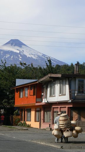 Nichée entre un lac azur et un parfait cône volcanique, la charmante petite ville de Pucón a de quoi ravir plus d'un visiteur. Sauf qu'il faut être inconscient, fataliste, optimiste et fou à la fois pour vivre dans l'ombre grondante et fumante de ce géant de 2847m toujours en activité. Ce gigantesque cône basaltique est un volcan violent. L'éruption de 1971 par exemple, ouvrit une fissure de 4 km de large d'où jaillirent quelques 30 millions de mètres cubes de lave. L'une des coulées faisait 14km de long pour 200m de large et 5m de haut ! Ce n'est cependant pas les coulées de lave qui firent des victimes lors des 4 grandes éruptions du volcan mais bien les coulées de boues. L'éruption provoque la fonte des glaciers et des torrents d'eau mêlée de terre dévalent la montagne.