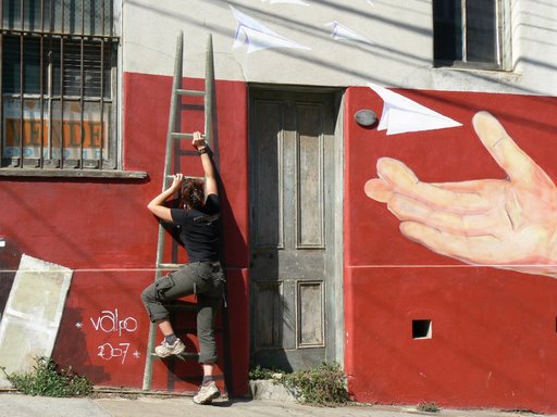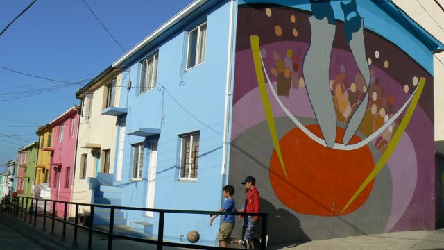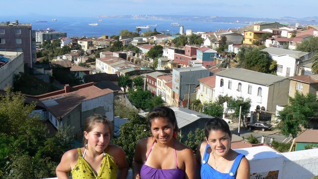 "Valpo" comme la nomment les Chiliens, a tout de la ville bohême : rues escarpées, bicoques branlantes multicolores, fresques murales à chaque coin de rue… la ville a une âme. Beaucoup lui préfèrent les charmes clinquants et mondains de sa voisine Viña del Mar, et pourtant quel cachet ! D'un centre-ville plat, les ascensores (funiculaires) centenaires se hissent en grinçant vers le vrai Valparaíso : les cerros. C'est en parcourant ces collines que l'on découvre véritablement la cité. C'est aussi là, malheureusement, que se trouvent quelques uns des bidonvilles les plus pauvres du pays. Il s'agit d'un enchevêtrement de ruelles, d'escaliers et de baraques aux tons vifs où les gamins jouent au ballon, où les ados se rejoignent pour rêver, en contemplant la vie du port en contrebas. Nous rencontrons d'ailleurs trois demoiselles : Nathalia, Katherine et Genesis, que nous interviewons pour les besoins du film. Agées de 14 à 16 ans, lorsqu'on les interroge sur leur avenir, toutes trois rêvent simplement de fonder une famille après avoir poursuivit leurs études. Qui a dit que les jeunes n'avaient pas la tête sur les épaules ? [Esperamos que estan bien, gracias de nuevo, con cariño Denis et Mélanie].