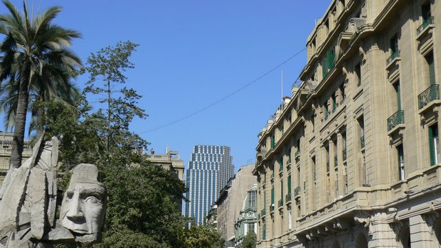 Baignée par le smog (nuage de pollution), mais aussi d'une atmosphère européenne et culturelle, avec plus de 4,5 millions d'habitants, la capitale du Chili n'a néanmoins pas le charme de sa voisine Argentine: Buenos Aires. Encore que… les cafés con piernas (littéralement cafés avec jambes), véritable institution à Santiago, pourraient me faire mentir. Dans ces établissements, des serveuses en tenue plutôt sexy apportent leur café à une clientèle d'hommes d'affaires d'âge moyen. Aussi curieux que cela puisse paraître à un étranger, cela fait partie intégrante de la journée de travail de nombreux businessmen chiliens qui se plongent tantôt dans leur quotidien financier, tantôt dans le décolleté d'une de ces créatures de rêve. [Holá Leslie, esperamos que estas bien gracias por tu amabilidad Denis y Mélanie.] Le concept peut sembler étrange, il n'empêche que c'est toujours plus sympa que chez Pierrot Pépère à Xoulces pour ceux qui connaissent. Mis à part cette excentricité, la capitale chilienne comprend tous les grands classiques des grandes villes sud-américaines: la plaza de armas et ses joueurs d'échecs, une course effrenée des immeubles de grandes firmes qui grattent le ciel, des rues commerçantes thématiques du genre 35 boutiques d'opticiens quasi contigües... la ville quoi.