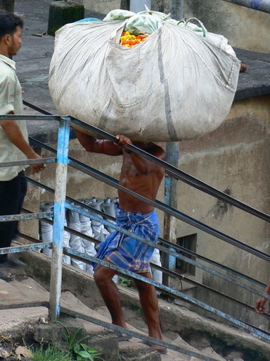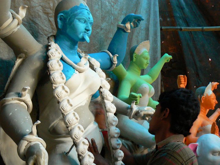 Dans une semaine a lieue la plus grande fête de l'année à Kolkata : la Durga Puja. A cette occasion, on confectionne des statues aux vives couleurs dédiées à la déesse Durga et à son entourage. J'essaierai d'y assister si possible mais compte tenu du bazar ambiant qui règne dans la ville sans même qu'il y ai un évènement spécial, je ferai mon possible. Oui, parce que mes amis : quel joyeux bordel ! L'anarchie insensée qui anime chaque artère de la cité, petite ou grande, est difficilement descriptible avec des mots. Donc, je me tais (facile celle-là). Bon ok, un petit effort. Si les vaches sacrées détournent la trajectoire des rickshaw-wallahs, les troupeaux de moutons qui traversent les grands boulevards ne manquent pas de donner l'occasion aux taxis de jouer du klaxon.