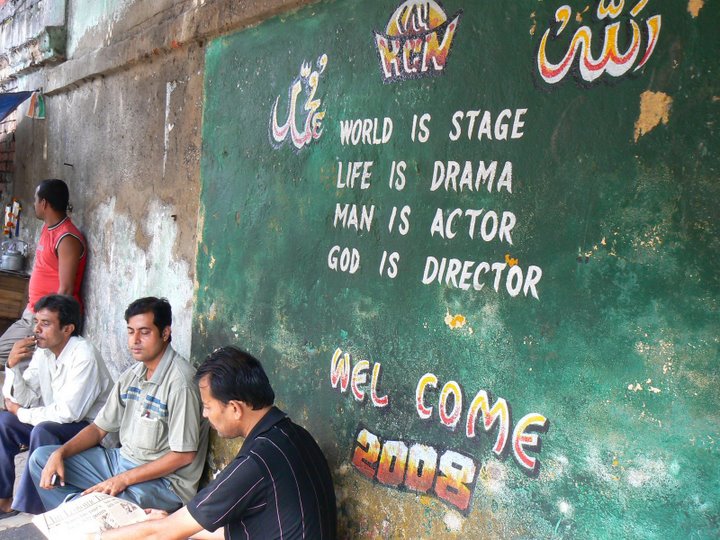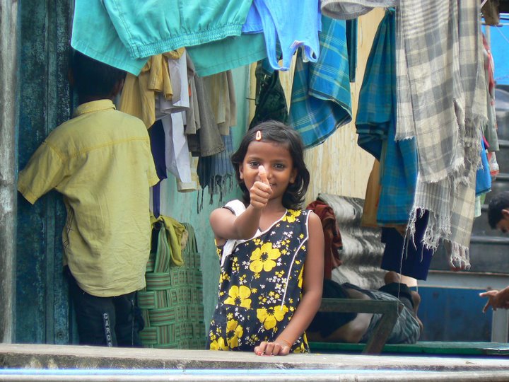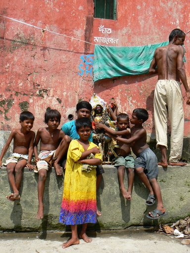 Premier réveil sur Kolkata (ex Calcutta), ma « chambre » (un vrai taudis) donne sur un toit-terasse et voici la première photo que je prends en Inde : cette fillette qui, sur le toit voisin, semble me faire signe que mon voyage en Inde s'engage sous de bons auspices. Hier, en faisant le trajet depuis l'aéroport jusque mon « hôtel », j'avais beau y être préparé, la vue de tous ces gens qui dorment, vivent et meurent sur le trottoir, m'a quand même remuée. De toute façon, rien ne prépare à l'Inde. C'est un condensé de tout ce que l'on connaît dans d'autres pays pauvres et à la fois c'est totalement différent, bref, c'est pour cela que je suis là ! Et puis, Kolkata pour commencer, on peut dire que c'est une sacrée entrée en matière ! 15 millions d'habitants dans un univers de sueur, de pollution et de misère. Certes ses habitants n'aiment guère cette image de pauvreté qui colle à la peau de la deuxième ville du pays. Mais les centres commerciaux climatisés, les cafés huppés ou la richesse décrépie des édifices coloniaux ne parviennent pas à effacer la misère du plus grand nombre qui s'affiche à chaque coin de rue. Je ne suis pas à Kolkata pour visiter le jardin botanique ou, comme le suggère mon guide de voyage, le cimetière de Park Street « ultime demeure de colons anonymes ou célèbres », franchement... Non, merci, j'aime autant passer du temps avec des locaux, anonymes et vivants. Ainsi, durant mon séjour dans cette petite bourgade tranquille (oui, c'est ironique !), je ne fais rien d'autre que me perdre, pour mieux sentir la ville. Il est toujours temps à la nuit tombée de prendre un taxi pour rentrer. En me baladant, j'échange avec quantité de gens. Rien de tel que de partager un chai en poursuivant la conversation, c'est une véritable institution en Inde et c'est en plus délicieux.