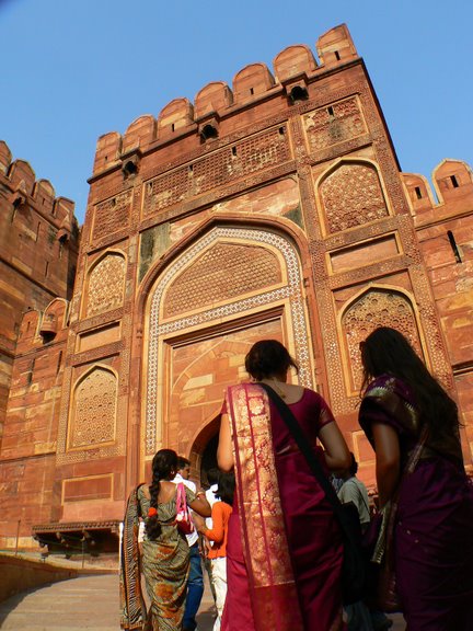 Ce n'est pas tous les jours que l'on visite le Taj Mahal, je mets donc toutes les chances de mon côté pour apprécier au maximum cette opportunité. Ainsi, lorsque les grilles s'ouvrent à 6h15, je pénètre en premier dans l'enceinte, plutôt sympa ! Par contre, je suis contraint d'abandonner Schkroumpf à la consigne, je suppose qu'il a tiré la langue au gardien. Comme il est tristounet, je l'emmène le soir même voir le soleil se coucher sur cet hymne à la beauté et à l'Amour…