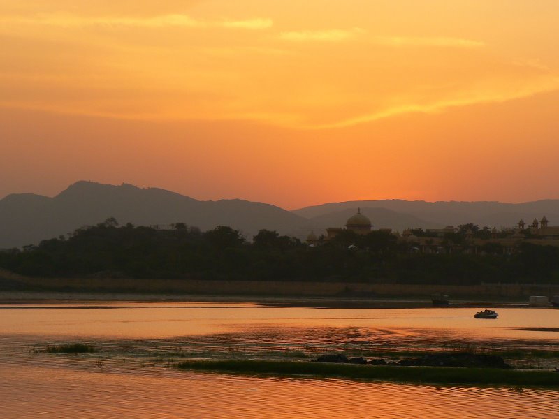 Le lac, asséché par des moussons de faible ampleur, s'est de nouveau remplit en 2006 suite à une pluviosité sans précédent. L'eau reste néanmoins un problème important dans tout le Rajasthan. Je profite et savoure pleinement mes derniers instants en Inde, en voyage. Au milieu des rickshaw, des éléphants, des dromadaires et des vaches, je me balade tranquillement dans ce pays que j'ai appris à aimer. En Inde, le spectacle ne cesse que lorsque les paupières se ferment. La frontière entre rêve et réalité s'étiole et vacille, comme un soleil rougeoyant sombrant dans les eaux…