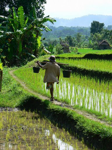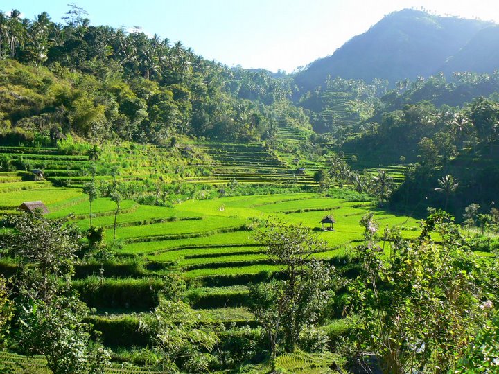 Bali est dépourvue d'industrie et c'est tant mieux, voilà pour ce qui est du secteur secondaire. Le secteur tertiaire est tourné essentiellement vers le tourisme quant au secteur primaire, c'est là notre propos. Si tu es malin(e), et je n'en doute pas, tu te rendras compte que je ne t'ai encore rien appris d'intéressant et que je prends de surcroit ton précieux temps pour te faire lire mes idioties. Mais ne dit-on pas qu'il faut savoir perdre son temps pour en gagner ? Non ? Ah, bon, autant pour moi, alors je me lance. Aaaaaahhhhhhhhhhhhh... (humour du secteur primaire (tu as quand même sourit remarque, j't'ai vu !)).