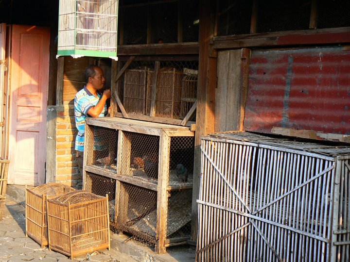 Tout doucement, on quitte la douce torpeur des campagnes de Java pour le tumulte, pour ne pas dire la folie, de ses villes. Yogyakarta est notre première étape urbaine. La cité compte plus d'un million d'habitants, ce qui offre déjà un joyeux folklore. Pour le côté folklore je pense d'ailleurs avoir été servi pendant ma visite de Yogya ! J'ai commencé par la visite du marché aux oiseaux. J'y ai croisé effectivement de jolis volatiles, plus ou moins beaux, plus ou moins entassés. J'y ai aussi aperçu quelques chauves-souris, des chiots, des petits singes, des geckos… Ils ne sont pas là pour trouver un maître attentionné malheureusement, mais plutôt pour le repas de certains… Je sais. Il parait même que les chauve-souris, bien préparées, seraient excellentes pour l'asthme. Cela m'a fait tousser !