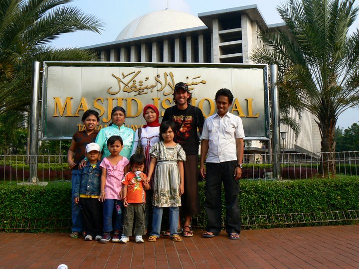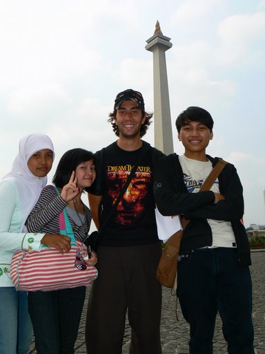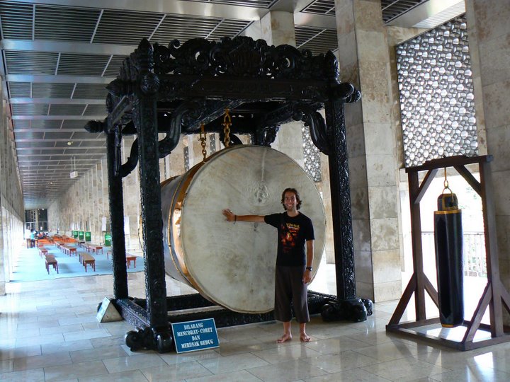 Je pars au petit matin pour Jakarta où m'attendent, je le sais, d'autres réalités crues. Pas dur de savoir que l'on se rapproche de la plus grande ville d'Asie du Sud-est, à plusieurs kilomètres du centre, on plonge dans un nuage de pollution impressionnant, me voilà parti pour 48h d'apnée. Je commence par une visite classique de la ville et de ces centres d'intérêt. Devant l'imposant monument national où se pressent une foule de visiteurs, je rencontre des étudiants qui me demandent mon avis sur les violences à l'école en Indonésie. Apparemment c'est chose courante que les professeurs utilisent la manière forte. Je leur dis qu'en France c'est plus souvent le contraire, ce qui forcément ne manque pas de les étonner. Encore que je pense qu'ils ne m'aient pas vraiment pris au sérieux. Je visite ensuite l'immense mosquée Istiqlal. Achevée en 1978, comme beaucoup d'accomplissements remarquablesJ, elle peut d'après mon guide imposé, accueillir 77000 pèlerins pour la prière ! C'est encore plus gros que la chapelle de Frère-Jo (ça faisait longtemps). Cela peut sembler beaucoup mais compte tenu de l'ampleur du monument, c'est envisageable, et puis le premier pays musulman du monde méritait bien un tel fer de lance. La salle des prières s'élèvent ainsi sur 5 étages et que dire du tambour utilisé pour appeler les fidèles à la prière. Ils ne m'ont pas laissé utiliser leurs percus, je m'en suis donc allé.