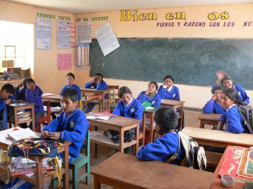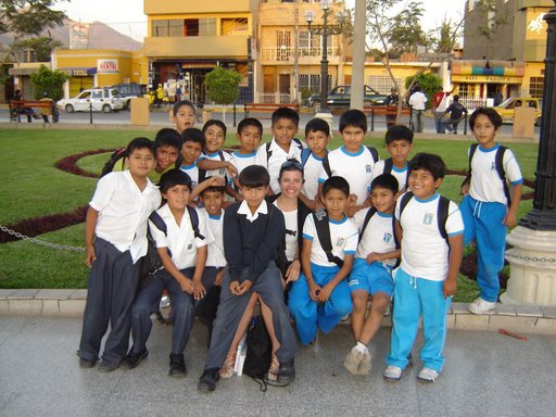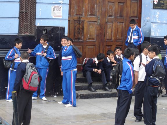 En route pour Pisco, nous croisons en chemin des élèves qui quittent les cours, ici comme vous pouvez le constater l’uniforme est de rigueur: tenue de sport et tenue de classe.