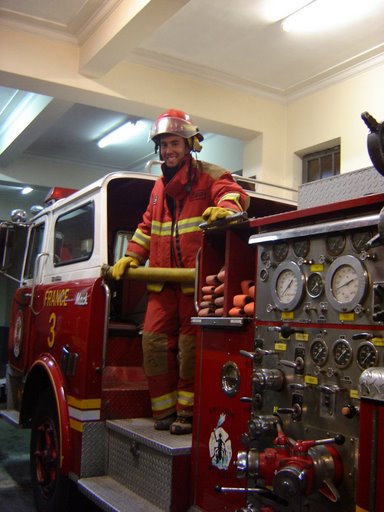 01h45, alerte incendie. Nous sommes de la partie, ayant au préalable obtenus l’autorisation. (Mél, “totately in the potatoes”, me demande si elle a le temps de faire un passage aux toilettes… bah tiens, ils attendrons!) Noter que j’avais jamais eu un réveil comme ça non plus; c’est assez “exhaltant” en fait, dans le sens où on est tout de suite dans l’action. Ca décoiffe tellement que Mél en perd son casque… la pauvre, dur dur d’être une paupiette, pompière… euh de se lever si brusquement!