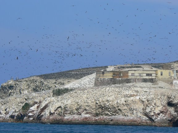 Levé 6h30 pour les Iles Ballestas surnommées “les Galápagos du pauvre” du fait de leur richesse et de leur accessibilité financière. Au bout de quelques minutes, on peut admirer le célèbre géoglyphe en forme de candélabre, dessin géant de 150m/50m. Personne n’en connaît ni l’origine, ni la signification mais les théories abondent. Certains le rattachent aux lignes de Nazca. D’autres pensent qu’il représente la constellation de la Croix du Sud et qu’il servait de repère aux navigateurs d’antan… Puis, nous arrivons aux îles. Là, vivent d’immenses colonies d’oiseaux qui un temps firent la richesse du Pérou grâce au guano (amas de fientes utilisé en agriculture pour ses propriétés fertilisantes: riche en nitrogène), aujourd’hui supplanté par les engrais chimiques. Nous observons avec bonheur des manchots de Humboldt, des pélicans thages, des lions de mer qui flanent sur les rochers, des sternes (petit oiseau au bec rouge, très grand migrateur), des cormorans… c’est génial de voir tous ces animaux dans leur milieu naturel.