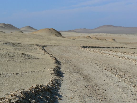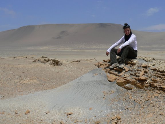 Muni d’une petite bouteille d’eau, on part affronter le désert! Bon, soyons honnêtes, on semble bien être les seuls “pélicans” à vouloir découvrir la Réserve Nationale de Paracas à pieds. Ca étonne beaucoup les gardiens d’ailleurs, mais bon… Il est vrai que 12kms de route rectiligne nous séparent du premier point de vue digne d’intérêt. On quitte la route principale trop monotone pour aller explorer les dunes. On y trouve des coquillages, preuve d’un niveau marin jadis plus élevé: la péninsule était alors sous l’eau. On s’amuse à gravir les dunes. Les formations rocheuses sont très étranges et on peut facilement y observer les différentes couches de sédimentation, accumulées parfois en petit promontoires (cf photo avec Mélanie).