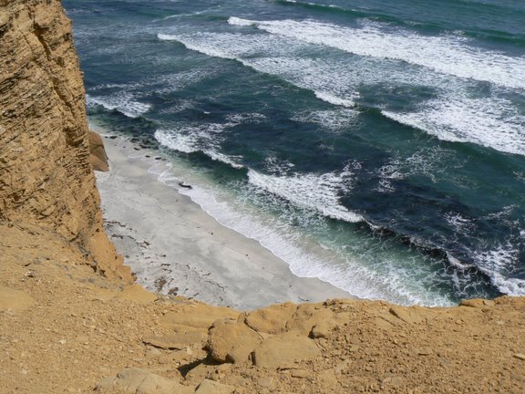 Après quelques hésitations (le balisage à dû être fait par un homme saoul ou aveugle), nous parvenons à la catedral, formation rocheuse sur la côte en forme d’arche due à l’érosion (l’Etretat péruvien). En fait d’arche, c’est un amas de roches que nous observerons. Malheureusement le tremblement de terre l’a fait s’écrouler et de grandes failles dans le sol sont visibles, impressionnant et triste.