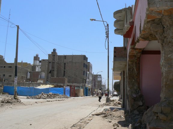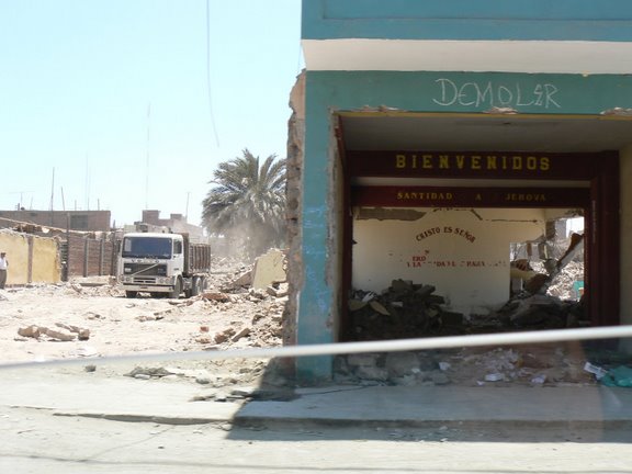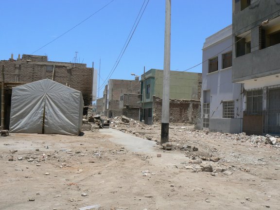 Car c’est aussi (et surtout) le but de notre aventure que de rendre compte de ce que nous observons. A la beauté sauvage des Iles répond un drame humain récent dont nombre d’entre vous ont entendu parlé : le terrible tremblement de terre (terremoto) qui secoua il y’a quelques semaines la région de Pisco, Ica… Si je ne me trompe pas, il avait une magnitude de 7,7 sur l’échelle de Richter, avec de très nombreuses répliques. Le gradient maximum étant de 9 ; c’est énorme !