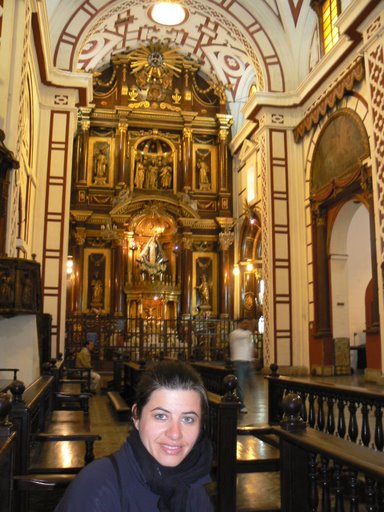 Les vives couleurs des façades s'étiolent dans une épaisse nappe de pollution, Lima s'étend à nos pieds, immense, sale. La pauvreté est flagrante, les baraquements que nous traversons ressemblent beaucoup aux favelas du Brésil je présume. 7 millions de Péruviens n'ont pas accès à l'eau potable (30% de la population). En ville, le soir il n'est pas rare de voir des personnes chercher quelque chose á récupérer... Ceci contraste fortement avec le luxe des demeures coloniales qui font le charme de la ville, reliques d’une époque faste mais qui déjá ne profita pas au peuple péruvien. Nous avons ainsi pü visiter le musée de l’Inquisition qui retrace les grandes lignes de la Conquista : obligation de se convertir au catholicisme, travaux forcés, pillage de toutes les richesses du pays (or...) au profit de la couronne espagnole.