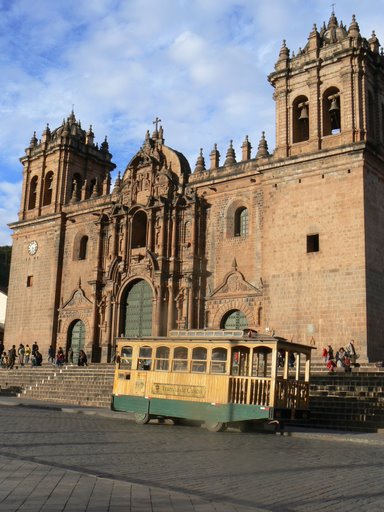 La ville est très agréable, elle fut jadis la capitale du puissant Empire Inca. De nombreuses demeures sont érigées sur de massives fondations de l’époque impériale, mélange de style colonial et religieux. Cusco est la ville la plus visitée du Pérou et bon nombre de “gringos” se plaisent à sillonner ses étroites rues pavées. Aux portes de la Vallée sacrée, elle est aussi le point de départ pour le fameux Machu Picchu. Cusco est aujourd’hui la capitale archéologique incontestée des Amériques et la plus ancienne ville habitée du continent. Si le tourisme est devenu la première ressource de l’ancienne cité inca, elle n’en reste pas moins fermement attachée à son passé et les descendants des Incas conversent en quechua sur les places. De retour d’une balade sur les hauteurs de la ville pour en apprécier la forme (Pachacutec le 9ème inca, lui donna une forme de puma et dévia les cours des fleuves afin qu’il la traversent-rien que ça!), nous avons croiser deux gentils alpagas qui ont consentis à prendre la pause pour les écoliers français… sympa l’alpaga!