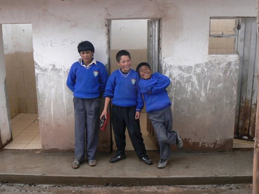 Après avoir visité le seul et unique centre gérontologique de Cusco, qui compte tout de même quelques 330 000 âmes (hallucinant non?!), nous nous sommes rendus dans une petite communauté sur les hauteurs de Cusco. Grâce à la collecte par les écoliers de bouteilles plastiques (c’est malheureusement pas ce qui manque), les ingénieurs volontaires de la fondation ont mis au point un astucieux système de panneaux solaires. Les bouteilles des boissons préférées des habitants agissent comme une serre et réchauffent les tuyaux de conduites d’eaux sur le toit de l’école. 100% propre, recyclage des bouteilles, des enfants heureux… je leur tire mon bonnet!
