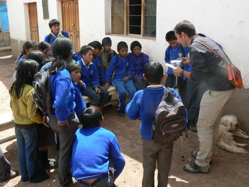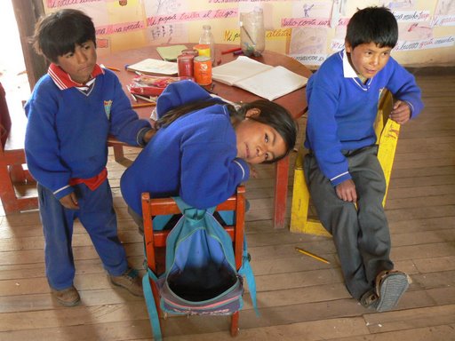 Nous avons rencontré des écoliers à la sortie des classes hier, enfin…ils nous ont rencontrés! Ils ont 10 ans et sont en “5ème classe” à l’école Maria Reiche. Ils sont tout de même 38 dans leur classe! Nous avons discuté un bon moment avec eux, leur expliquant d’où on venait… et je crois qu’ils attendent impatiemment cette photo sur le site!