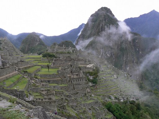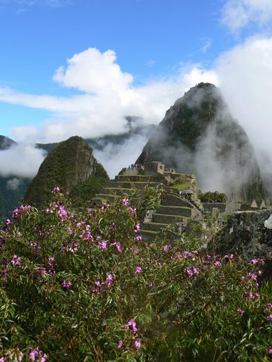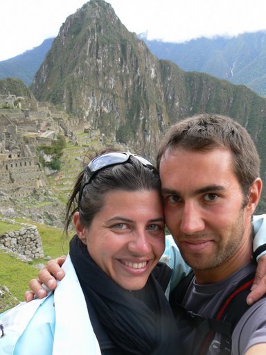 4h30, réveil aux aurores, c’est pas tous les jours que l’on visite un site aussi prestigieux, nous voulons en profiter au maximum! Malgré tout, il y’a déjà une centaine de personnes qui attendent comme nous un petit bus qui nous conduira au site (rien ne sert de faire le chemin à pieds l’ouverture ne se fait de toute façon qu’à 6h, dommage). Mélanie n’étant pas en grande forme, nous avons dû annuler les itinéraires “lama fûté” que j’avais débusqués pour opter pour un circuit plus traditionnel. Passés l’entrée, malgré un temps maussade, nous découvrons vite la fameuse vue des ruines en contrebas du Huayna Picchu. Je fais vite quelques prises de vues, ici le temps peut changer radicalement en quelques minutes. Nous “profitons” que le site est maintenant recouvert d’un épais manteau de brume, et qu’il pleut, pour partir à la découverte de ces ruines que nous voyions encore il y’a quelques secondes en contrebas. Peu à peu, le soleil revient sur le site; quelle chance et quel spectacle! Nous nous lançons dans l’ascension du Huanay Picchu ou “jeune montagne” ( Machupicchu signifiant “vieille montagne” et Picachu “pic de la montagne”, non?!). On est pas loin de faire de l’escalade, comme on dit dans les Vosges, “ça grimpe!” A l’arrivée au sommet, superbe vue sur le site, danses de papillons multicolores ¡vale la pena!