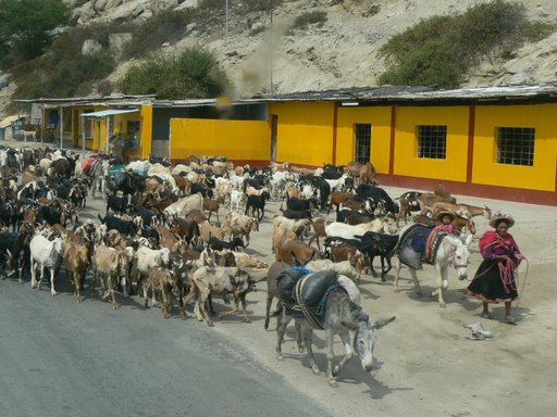 Levé 5h30 pour prendre un bus pour Arequipa, la blanche. Après quelques heures de trajet, changement surprise de compagnie, nous embarquons avec “Señor de los milagros” (Seigneur des miracles), et le miracle se fait: 2h30 de + que prévu! Pendant ce petit trajet, on voit passer un nombre incalculable de marchands-crieurs. Ça va du prêchi-prêcha donnant l’absolution en échange de bonbons en passant par les plus classiques musiciens, vendeurs de boissons et snacks, de livres…