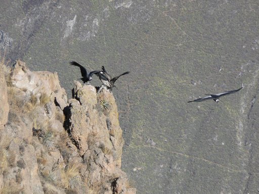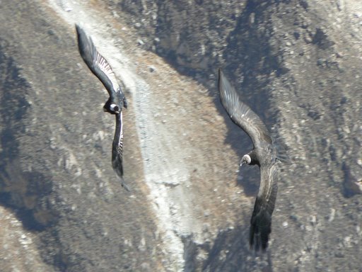 Levé 0h40, dormi 1h30; un peu difficile. Arrivés au terminal de bus, c’est un homme cagoulé qui nous ouvre la grille, les nuits péruviennes… caliente! Bon, à priori, c’est pas dans le bus que l’on va pouvoir continuer notre petite nuit; le chauffeur est de toute évidence un psychopathe. On fait littéralement des bonds de 30, 40 cm sur nos sièges, on est hilares. Que faire d’autre de toute façon… prier peut-être. Après 4h de “rodéo-bus”, nous arrivons sur le site dénommé Cruz del Condor, notre meilleure chance de pouvoir observer ce prince des cieux.