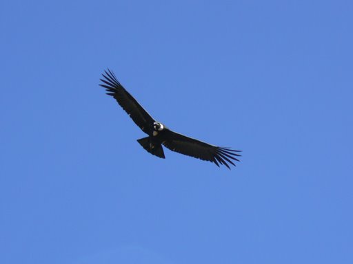 Nous avons enfin la chance de pouvoir observer des condors, qui rappelons-le, se font malheureusement de plus en plus rares. Nous étant isolés, certains passent même à quelques mètres au-dessus de nos têtes, c’est très impressionnant! En effet, le condor des Andes est l’oiseau possédant la plus grande envergure. Certains spécimens peuvent atteindre 3,50m d’envergure pour un poids de 11 à 13kg. Ce grand rapace charognard peut vivre jusque 90 ans. Profitant des courants ascendants, il parvient en planant à monter parfois jusque 6000m d’altitude. Intrinsèquement lié à l’histoire des Andes, il nourrit aussi bon nombre de légendes. Vers midi, un garde du parc national m’indique du doigt le sommet d’une montagne en m’expliquant que les condors doivent sûrement avoir trouvé de quoi festoyer. Nous sommes absolument seuls sur le site, le garde même est parti. Après une ascension au pas de course (pas facile à 3500), nos efforts sont hautement récompensés. Une vingtaine de condors (!) se nourrissent d’une carcasse d’équidé (vous aurez compris). A notre vue ils s’envolent en silence et tournoient ensuite au-dessus de nous dans le soleil, quel spectacle et quel privilège! 2mn après, les condors partis, un petit renard vient prendre part au festin. Malgré une partie de cache-cache assez bien jouée, ils ne reviendront pas. Des éclaireurs survolent fréquemment notre position; je crois qu’ils sont un cran au-dessus de nous en matière d’observation…