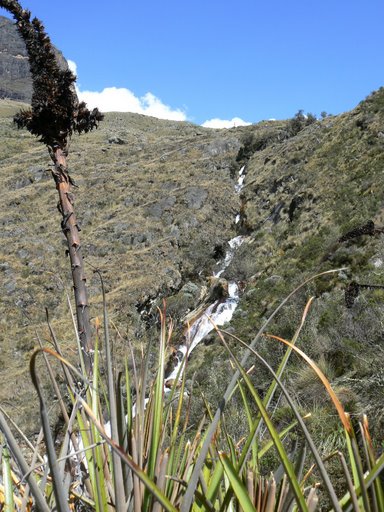 Réveil à 6h30, petite toilette dans la rivière avec vue imprenable sur les sommets enneigés. Commencent les choses sérieuses avec déjà un bon dénivelé pour la mise en jambes. Rappelons que nous sommes à 4000m; on paie vite le moindre effort. Nous avons 4h de marche jusqu’à la passe de Punto Unión.