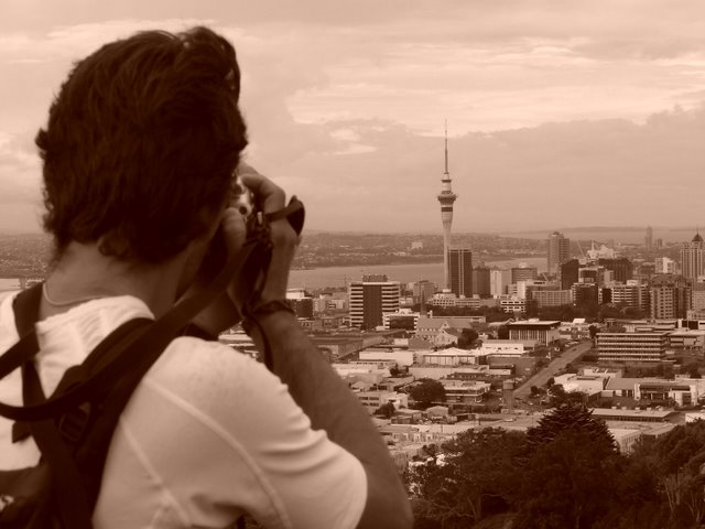 Si Auckland n'est pas la capitale néo-zélandaise, elle n'en est pas moins la ville la plus importante. Près d'un tiers de la population habite Auckland ou sa périphérie et la cité, qui dépasse déjà le million d'habitants, continue à croître plus vite que le reste du pays. Peu prospère à ses débuts, elle prit son essor grâce à une ruée vers l'or et à la hausse de la production agricole à la fin du XIXème siècle. C'est aussi là que vit la communauté polynésienne la plus importante du monde. Cultures maorie, polynésienne, asiatique et européenne créent une atmosphère cosmopolite unique. Auckland est située sur un isthme. Si l'emblématique Sky Tower offre une plate-forme panoramique de choix, il est tout aussi agréable de gravir l'un des petits volcans éteints qui enserrent la ville et ménagent une vue superbe sur la cité, le port et les îles du large. Aux abords du cratère (dedans aussi), nous croisons quantité de joggers et de vaches, le rapport? Aucun, si ce n'est que la NZ semble vraiment être très Nature! Paris: 18550 kms, bon ne nous attendez pas pour souper...