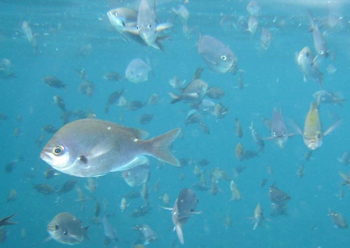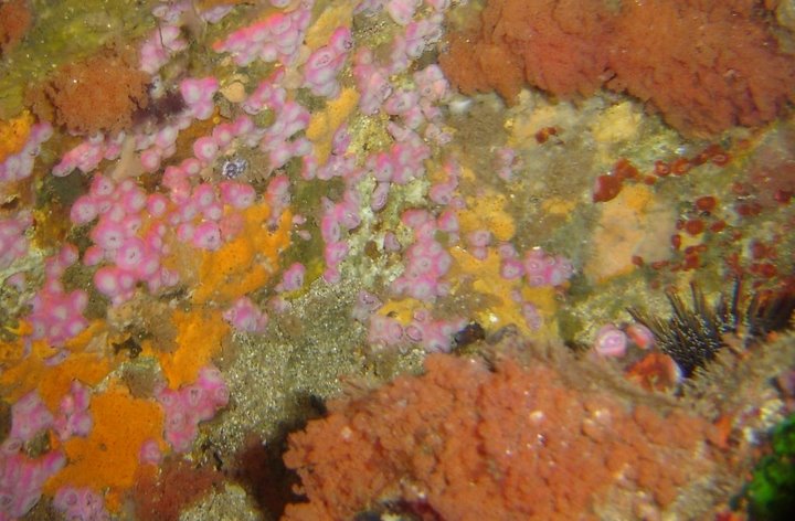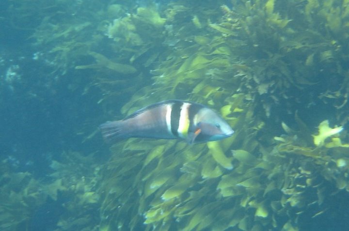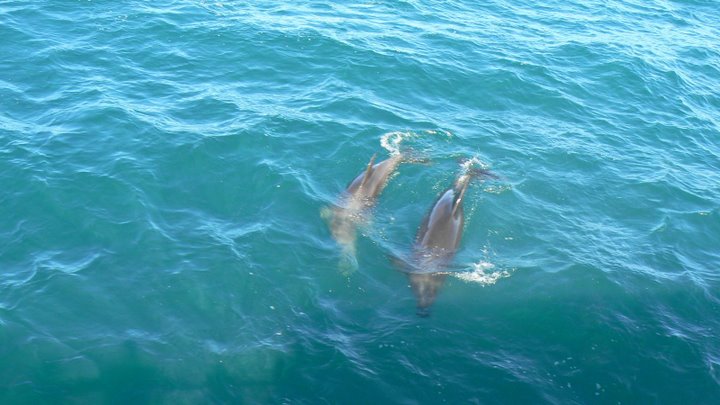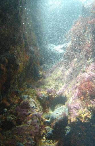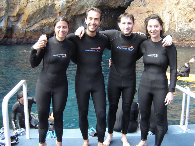 La mer est agitée ce matin, notre Ti Pimousse vire au vert je me charge du jaune pâle. Nous retrouvons des couleurs à la vue de grands dauphins qui viennent s'amuser autour du bateau. Nous sautons ensuite à l'eau. Celle-ci est fraîche mais quel spectacle ! Jacques Cousteau considérait l'endroit comme l'un des 10 plus beaux sites de plongée au monde, quand même ! Tunnels, arches et cavernes sont peuplés de poissons et d'éponges multicolores. De nombreux spécimens sont endémiques : on ne les trouve qu'ici.
