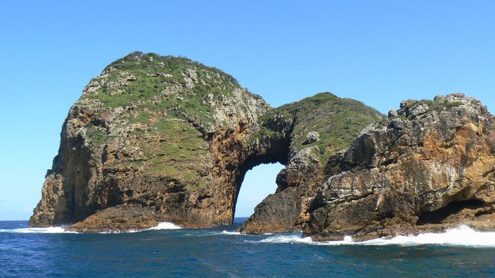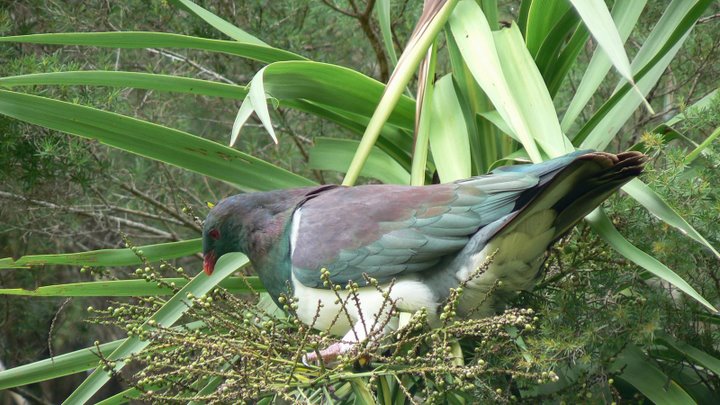 Les pisines naturelles sont aussi à la hauteur de nos espérances, ou non, plutôt au-delà, l'eau est cristalline (cf photos). L'après-midi, nous quittons à regret Matapouri pour gagner Bay of Islands où fut signé en 1840 le traité de Waitangi. Document fondateur de la NZ, conclu entre les représentants de la couronne britannique et des chefs maoris, les divergences entre les versions anglaises et maories entraînèrent des controverses toujours d'actualité. En échange du droit d'acheter des terres, les Maoris se virent accorder les mêmes privilèges que tout citoyen britannique. Sympa, surtout après leur avoir apporter la rougeole, la variole, les armes à feu (qui aggravèrent les conflits tribaux), et l'opportunité forcée d'idôlatrer un dieu qu'ils ne connaissaient pas jusqu'alors, les grands classiques de la colonisation en somme, merci du cadeau. Nous décidons de repartir dormir à Matapouri. Sur le chemin du retour, nous traquons (du regard) les petits kiwis. A part Alex qui a eu le bonheur d'apercevoir le postérieur de cet emblématique volatile au détour d'un virage, nous n'en verrons point. De fait je vous ai mis une photo de pigeon des bois, le kukupa, même les pigeons sont jolis, quel pays ! Par contre, nous croisons quantité d'opposums qui gambadent sur la route. Bon, il est temps que je vous parle de notre excursion à Poor Knights Islands.