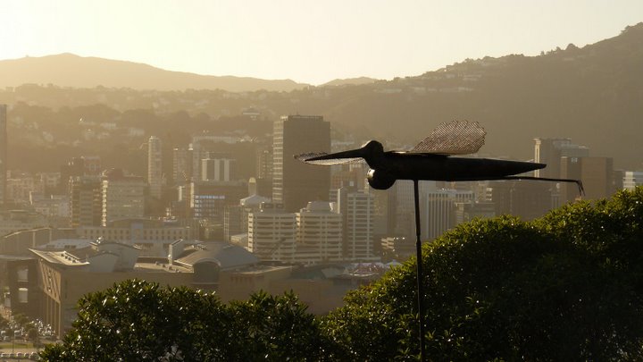 Avant tout siège du Parlement, la petite capitale néo-zélandaise (seulement 190000 habitants intra muros) s'est transformée au cours des deux dernières décennies en un creuset culturel bouillonnant. Sa relative petite taille, ses espaces verts, ses sculptures à chaque coin de rue et un vrai élan sportif rendent la ville plutôt agréable pour un grand centre urbain. Blottie autour d'une jolie baie et gravissant petit à petit les collines environnantes, la cité possède une atmosphère intime et sophistiquée, comme en témoigne la photo ci-jointe d'une jeune « Welliwoodienne ». [ J'en profite d'ailleurs pour vous informer que tout au long des carnets de route de la NZ nous devons de très beaux clichés au Directeur Artistique de l'Association. Hein, qui ? Oui, bon, Ti Pimouss', quoi.]
