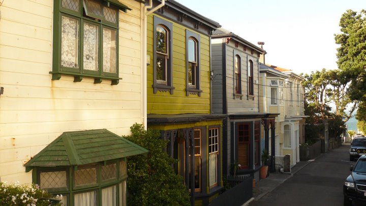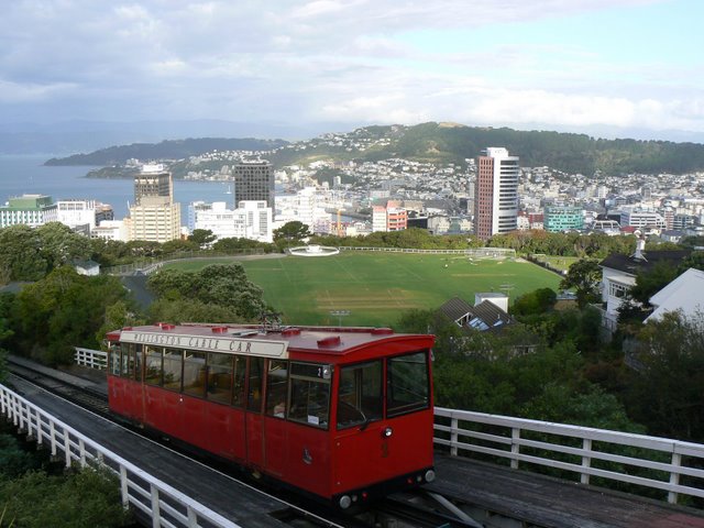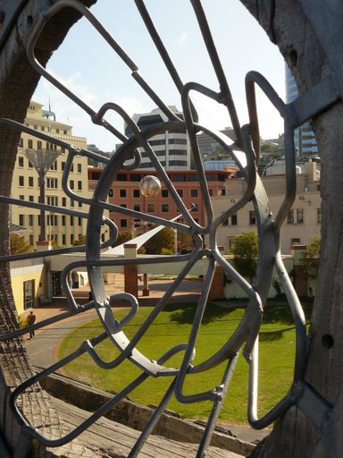 Le Cable Car (funiculaire) qui nous amène au jardin botanique, nous permet aussi d'apprécier l'architecture de jolies demeures victoriennes et d'une pléthore de villas en bois, caractéristiques du paysage urbain de Wellington. Nous retrouvons la boule (que nous avions semble t'il perdue au jardin botanique) comme flottant dans l'air, au dessus de Civic Square. Cette sculpture aérienne de Neil Dawson est un assemblage de fougères argentées, l'autre emblème du pays, original. Nous la reperdons sitôt quittés la place, Mélanie en fera les frais : « Dis maman, on le ramène à la maison, il a l'air gentil… ».
