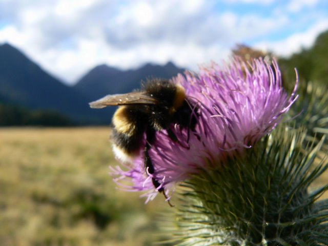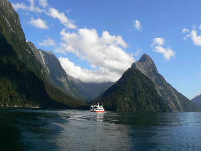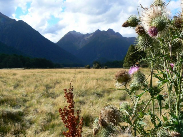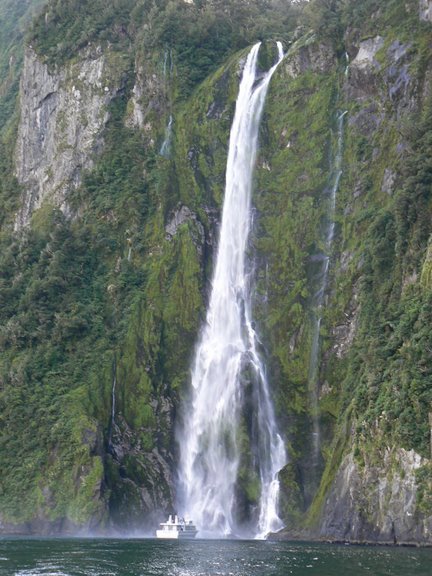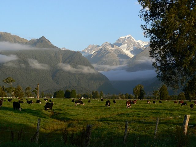 Le réveil ? Quel réveil ? Après une petite spéciale version rallye de Nouvelle-Zélande avec la voiture de location (une vraie chariote) pour attraper notre bateau, nous embarquons in extremis pour une petite croisière de 2 heures au sein du célèbre Milford Sound. Nous sommes dans le Fjordland National Park. Plus vaste parc national néo-zélandais, celui-ci est aussi inscrit au patrimoine mondial de l'Unesco. On y trouve pas moins de 14 fjords et 5 grands lacs glaciaires. Le terme sound désigne un bras de mer formé par la submersion d'une vallée fluviale, mais malgré leur nom, le Milford Sound, le Doubtful Sound (plus beau encore mais moins accessible y compris financièrement…) et leurs confrères sont des fjords. Les fjords sont des plissements de l'écorce terrestre approfondis et élargis par des glaciers puis envahis par la mer quand son niveau a monté (fin de la dernière ère glaciaire). La première image qui s'offre à nous est celle de Mitre Peak, recouvert d'une épaisse forêt primitive. Principal point de repère du Milford Sound, ce pic a en effet la forme d'une mitre (coiffe liturgique euh pardon, chépé genre celui de St Nicolas), il est facilement remarquable. Sur le parcours, de jolies cascades s'élancent depuis les sommets à l'instar des Bowen Falls qui jaillissent d'une vallée glaciaire en surplomb pour une chute de 160m. Le chemin du retour par la 94 entre Milford Sound et Te Anau nous réserve encore de magnifiques vues, comme celle de ces vastes plaines herbeuses aux pieds de vertigineux sommets, de jolis lacs glaciaires, des forêts séculaires aux curieuses excroissances… Et surtout, des moutons, des moutons et des moutons ! Il faut dire qu'il y en a 15 pour un habitant ! 4 millions de Néo-Zélandais et 60 millions de moutons, soit les habitants de la France. N'y voyez aucune allusion douteuse, j'en fait partie aussi, pas folle la guêpe ! Non, pas sur le chardon, là c'est un bourdon... Bref, il y en a partout, à perte de vue. Ceux en photo sont des romneys, c'est l'espèce la plus répandue en Nouvelle-Zélande. Les 60 millions de moutons et les 10 millions de têtes de bétail du pays fournissent de la viande, de la laine, des produits laitiers et du cuir. On élève aussi des chèvres, des daims et des vaches mais pas n'importe laquelle s'il vous plaît : la holstein-frisonne. Je suis très inculte en la matière, me limitant au fait que ça fait « meuh-meuh » et que ça pond des briques de lait. Néanmoins je ne crois pas me tromper en disant que c'est aussi la race que l'on élève dans les Vosges, la vosgienne nondediou ! Excusez, j'ai la langue verte, comme les meuh meuh, mais saperlipopette, vachement utile de venir jusque là !