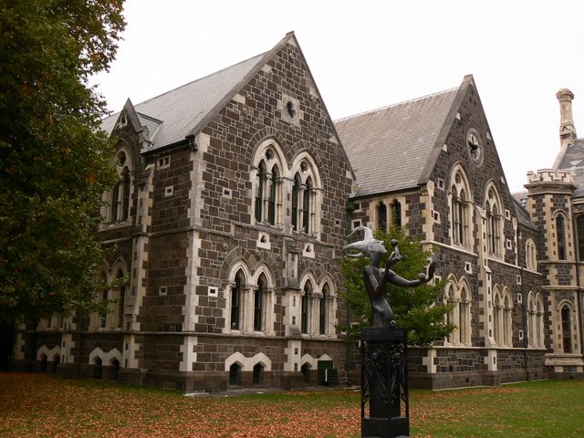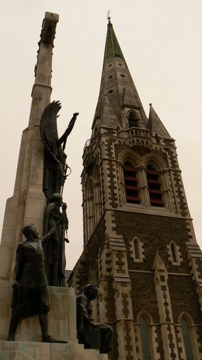 Alors qu'il fumait la pipe, Rapapikapopek, dieu de la foudre et du pain d'épice… bon, c'est vrai je vous l'avais promis mais ce serait trop long. Nous voici donc à la fin de notre aventure en Nouvelle-Zélande, dernière étape, Christchurch. La capitale provinciale du Canterbury est aussi la plus grande ville de l'île du Sud. Nombre d'édifices et de monuments rappellent son passé colonial. En effet, en 1850, elle était déjà capitale d'un établissement planifié, fondé dans le Canterbury par une colonie d'émigrants religieux. C'est ainsi qu'en 1864, commença la construction d'un sanctuaire autour duquel s'organisa la vie de la jeune communauté d'immigrants anglicans : la Christ Church qui par extension baptisa la cité. Ses splendides bâtiments néogothiques, ses espaces verts très soignés, ou encore l'Avon River (et ses gondoliers) qui serpente paresseusement à travers la cité contribuent à faire de Christchurch une ville très agréable. Nous regrettons dès notre arrivée d'avoir si peu de temps à consacrer à la découverte de ce que beaucoup considèrent comme la plus anglaise des villes hors de Grande-Bretagne. Ah, « Chris Crunch », comme dirait Mélanie. Nous sommes chanceux car la ville accueille justement un festival blues/jazz et des concerts gratuits sont donnés un peu partout. Nous filons vers la place principale, Cathedral Square, pour 20h, début de « Earth Hour ». A l'initiative de la ville (si j'ai bien compris), tous les habitants sont invités pendant une heure à éteindre leurs lumières, leurs appareils électriques. Pendant ce temps, un film est projeté sur grand écran, sensibilisant le public aux dangers qui pèsent sur notre société de consommation, édifiant ! Le maire de Christchurch qui préside cette manifestation accorde une interview à une chaîne nationale tout près de nous. Alors que je réfléchis à la bonne manière pour l'aborder, Mélanie tranche pour moi : « Hi ! » (salut !). Je me cache. Elle marque une pause et enchaîne avec ce qu'elle peut dire en anglais pour le moment: « One minute please… ». « Vient Doudou, il est d'accord pour une interview ! ». J'avoue que la spontanéité de Mélanie est bien venue dans ces moments où je suis trop couillon, quel numéro ! Ceux qui connaissent son Papa, savent de qui elle tient ça ! Le maire est en tout cas très sympa, il nous explique que le mouvement est suivi dans d'autres grandes villes comme Sydney, Chicago… Une belle et nécessaire initiative. Nous faisons également la rencontre de Yelia et Samantha, deux jeunes filles dynamiques de 14 ans qui s'impliquent dans la manifestation. Elles apprennent par ailleurs le français en classe et se font donc un plaisir de répondre à nos questions. Le matin nous avions interviewé Liam, un jeune d'Asburton âgé de 12 ans qui comme beaucoup de ses copains rêve de devenir un jour pro de skate ou… de rugby.